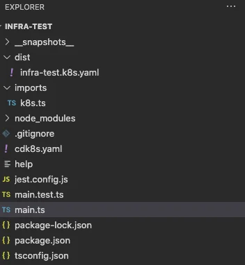 cdk8s init이 성공적으로 실행이 된다면 생성한 폴더에 cdk8s 프로젝트 세팅이 됩니다.