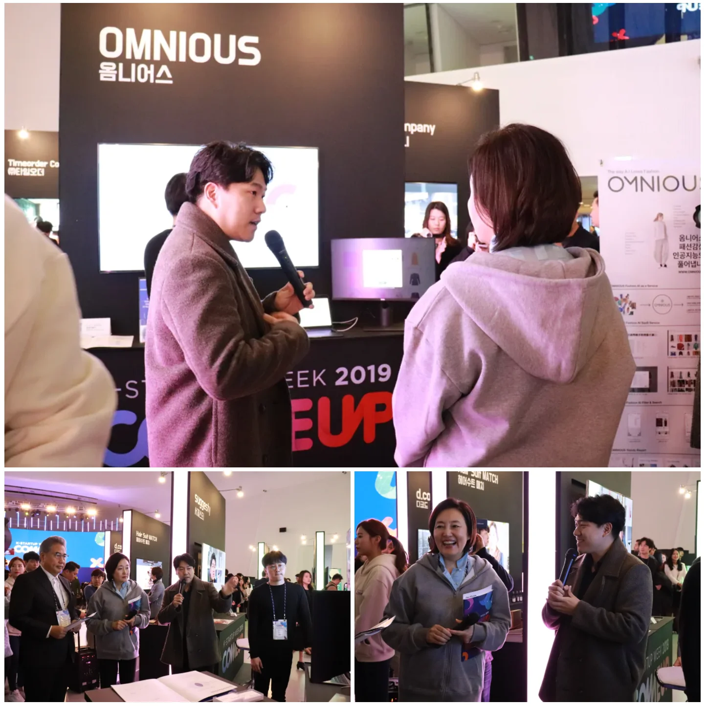 박영선 중소벤처기업부 장관님께서도 AI로 패션 비즈니스의 고객사들을 돕는 옴니어스에 많은 관심을 보여주셨어요. 부스에 직접 방문해 서비스 소개를 들으셨습니다.