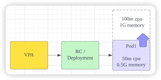 HPA와 동일하게 대상 Pod의 리소스를 감시하여 리소스가 부족할 경우, Pod의 재시작하여 Pod의 할당된 리소스를 증가시키는 방식입니다.