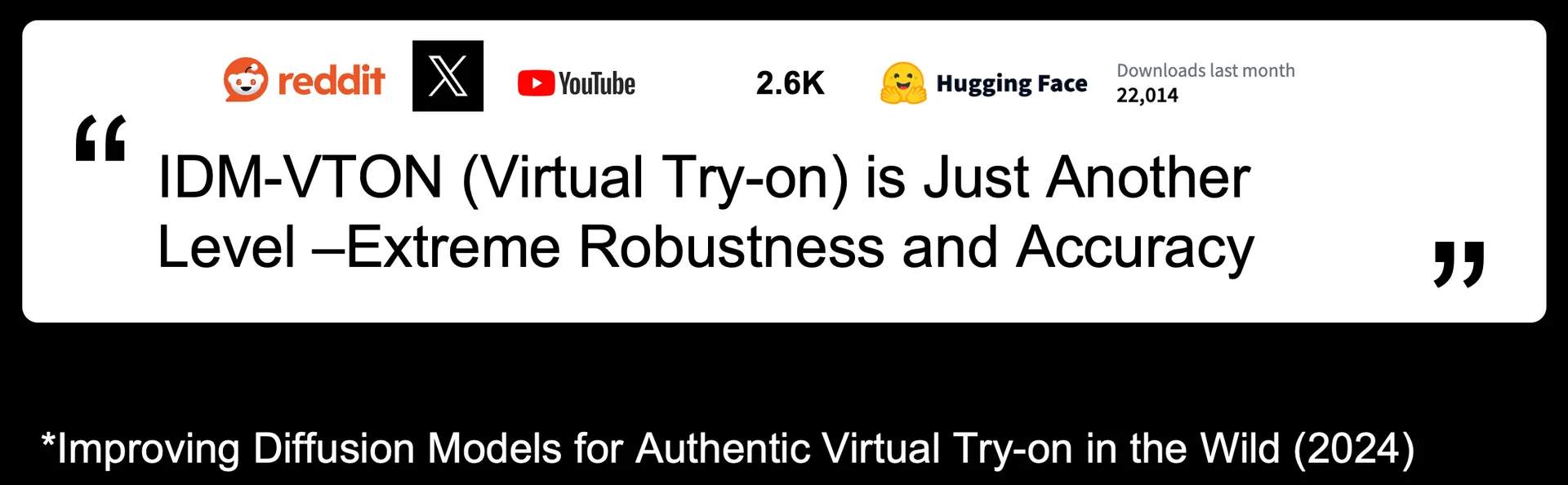 ECCV 2024에서 인정받은 우수한 기술력을 바탕으로, 업계 최초로 의류의 디테일을 완벽하게 보존하는 가상 착장 서비스를 선보입니다. 이번 프리뷰 공개를 통해 실제 사용 환경에서의 성능을 검증하고, 사용자 피드백을 수렴하여 더 나은 서비스로 발전 시키고자 합니다.