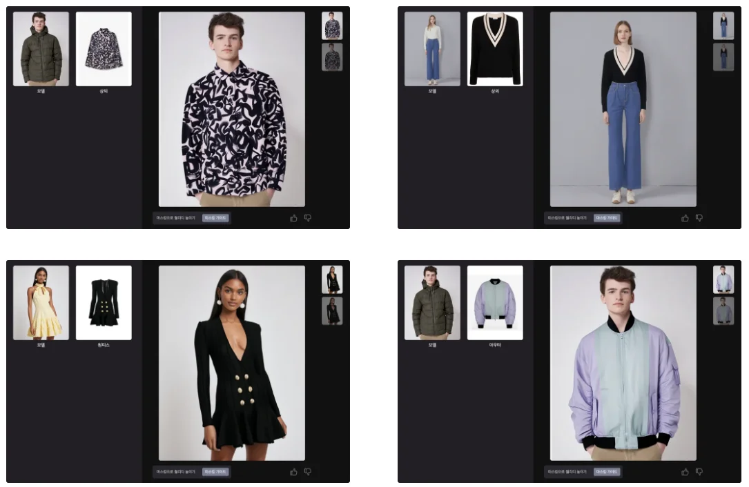 - Use Case: 패션 트렌드에 맞는 의류 상품을 가상으로 착장하여 커머스 몰의 상세 페이지에 사용할 고품질 이미지를 제작함으로써 구매 전환율을 높이고, 촬영에 필요한 시간과 비용을 절감할 수 있습니다.